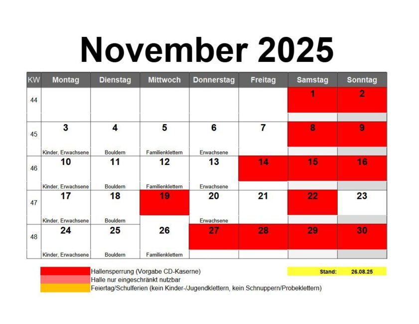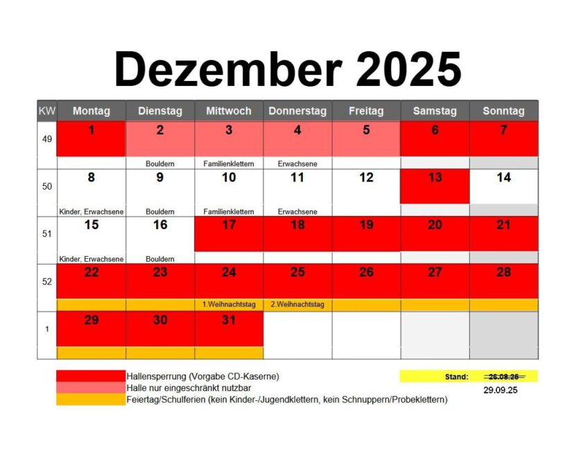 - „Eingeschränkte Nutzung“ = kein Schnupperklettern