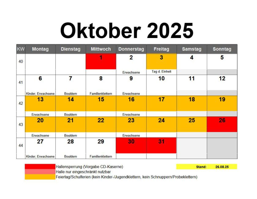 - Wochenende, Ferien und Feiertage = generell gesperrt